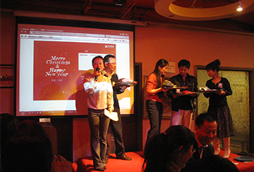在年会上展播征集来的员工创意DV 。这个节目既节省成本,还能激发员工参与的热情,各种创意短片也能让年会的内容更加丰富多彩。