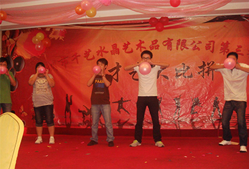 让员工模拟名人,表演节目。用当下最火的节目和最热的话题点亮年会现场,用幽默的话语博大家一笑,让员工忘记一年的辛苦,置身于轻松、愉快的氛围之中。